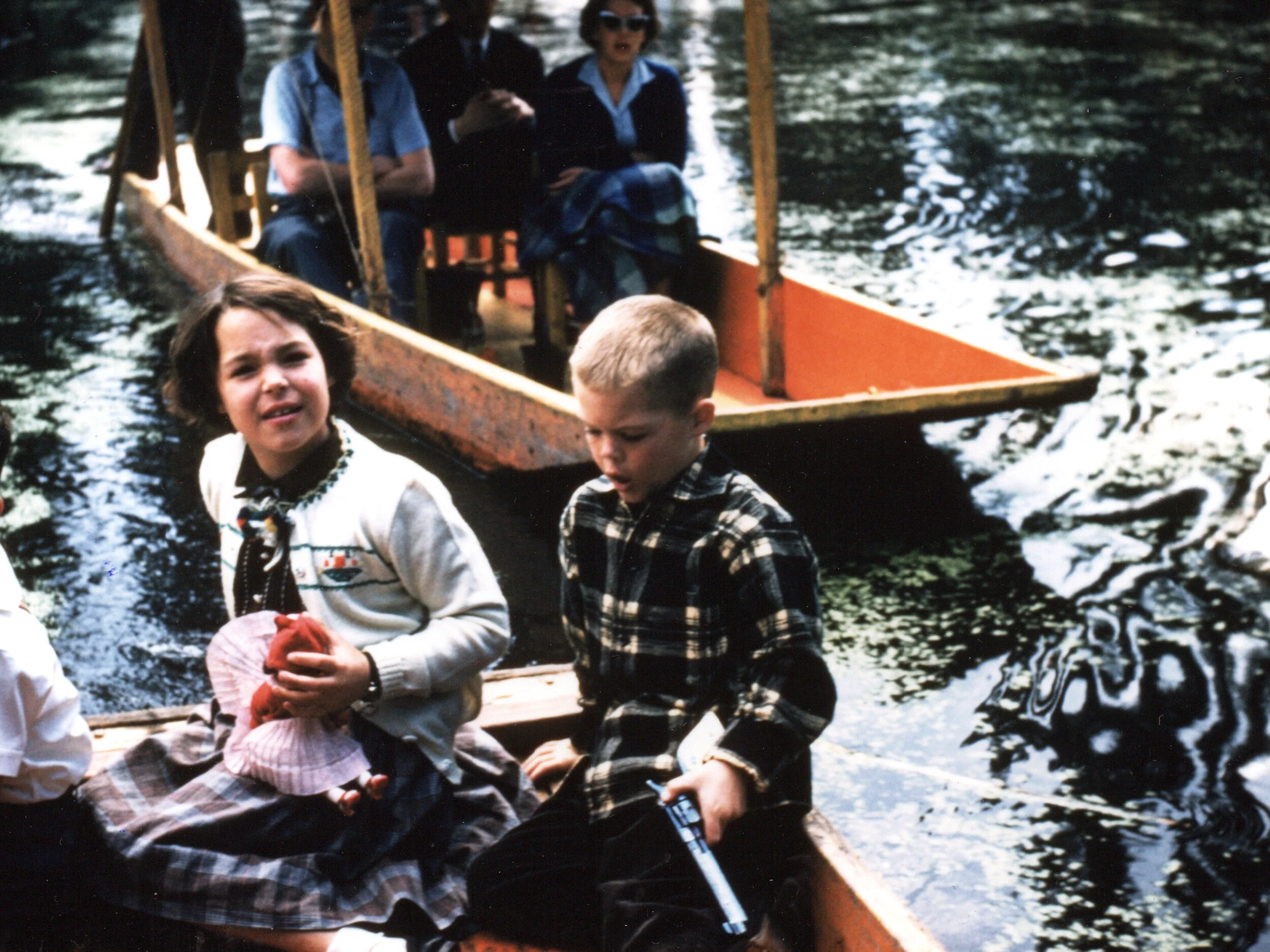 Nancy and Richard on a boat ride in Xochimilco, Mexico