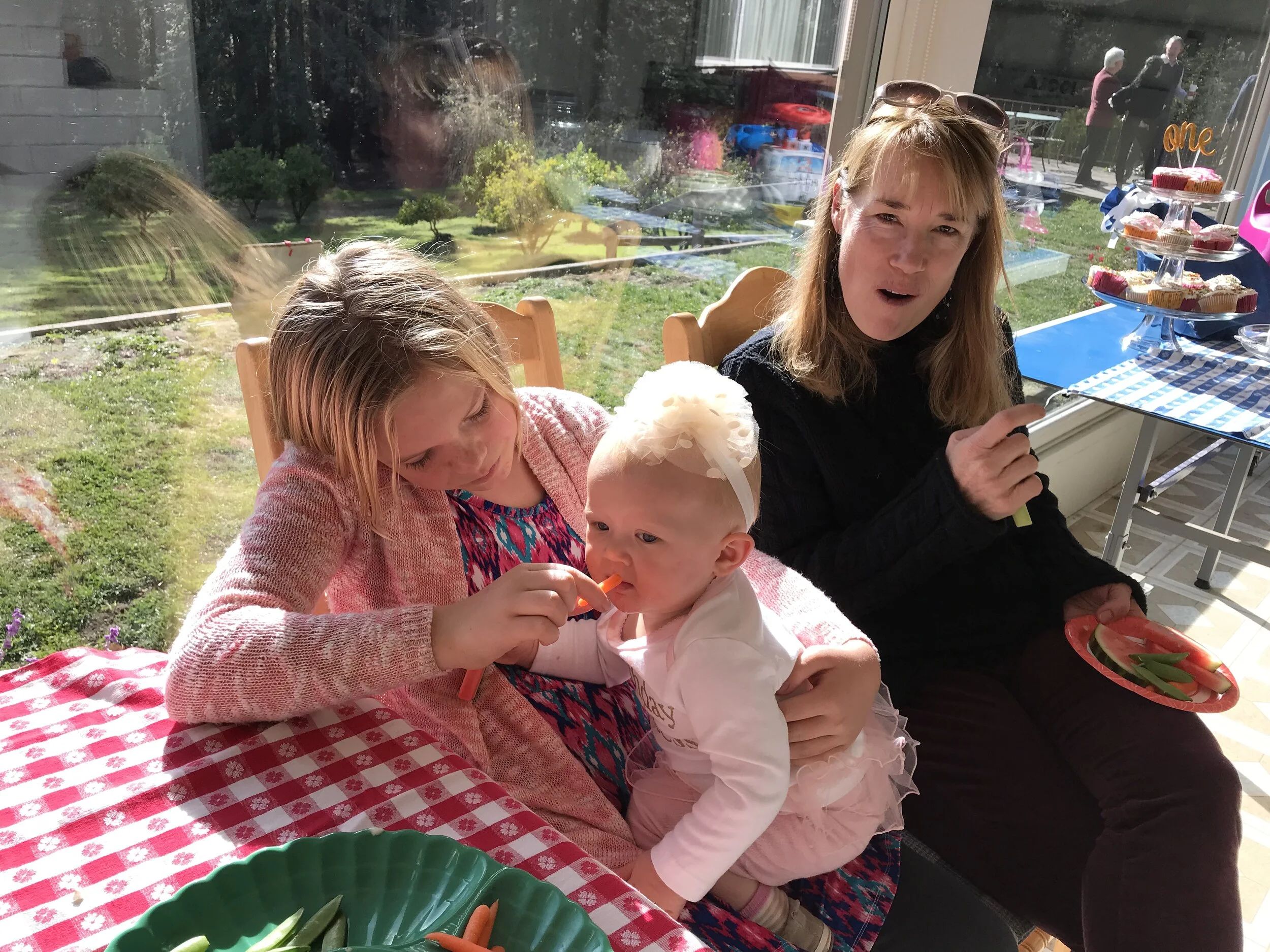 Nancy and friend take Elizabeth on a ride at Wildwood
